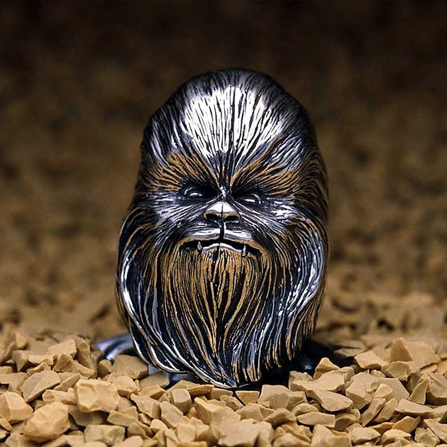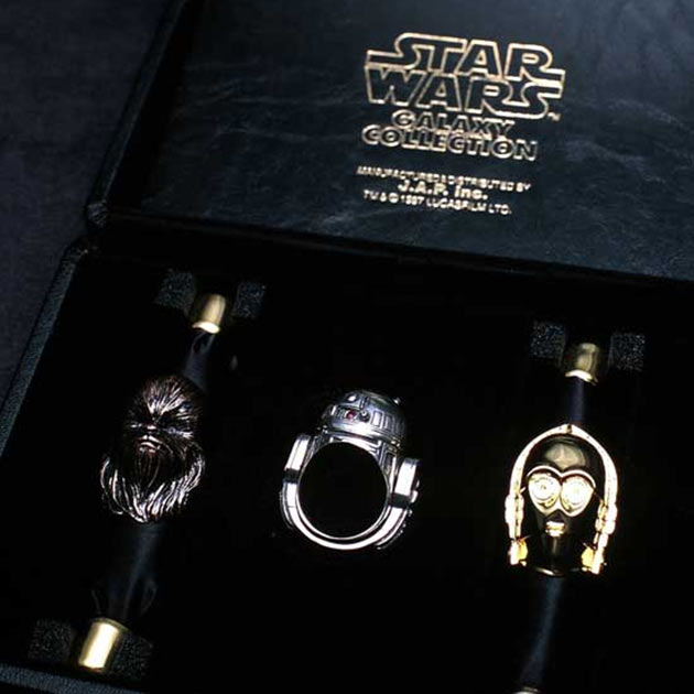 Японская компания JAP специализируется на выпуске необычных стилизованных украшений и недавно она решила порадовать фанатов вселенной «Звездных войн», выпустив целую коллекцию тематических колец. Перерыл онлайновый магазин этой дизайнерской конторы, но пока там и не нашел упомянутых аксессуаров. Скорее всего компания лишь анонсировала их, а продажа начнется в ближайшее время. Персонажи из «Звездных войн» официально лицензированы, отлично вписаны в кольца и очень детализированы. Фактически в коллекцию входят все наиболее яркие герои серии, включая Чубаку и Дарта Вейдера. Также, если ты действительно фанат, не забудь приобрести заварочное сито «Death Star», визитницу Star Wars Card Holder и комбинезончик Second Skin Star Wars.