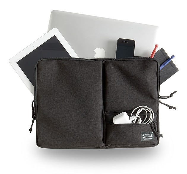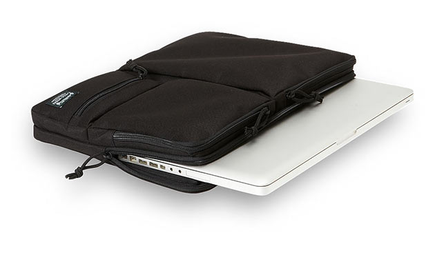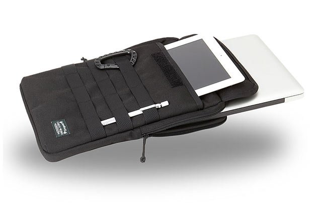 К сожалению, не во всей крутой ручной клади есть специальное место для ноутбука. В частности, обзавелся слингом Maxpedition Sitka Gearslinge, но 13-дюймовый Retina MacBook Pro в задний отдел для гидропака не поместился, буквально сантиметра-полутора не хватило. В итоге приходится его таскать внутри основного отдела и в таком случае ноутбук лучше защитить чехлом из неопрена или другой, способной смягчать удары ткани. Пару интересных моделей нашел у Cargo Works. Компания предлагает вариант MacBook Module Sleeve и MacBook Air + iPad Sleeve. Фишка этих аксессуаров в использовании очень крепкого полиэстера с плотностью 900D, японской фурнитуры YKK и наличии дополнительных карманов. В первом случае можно и планшет спрятать, и блокнот, и блок питания и еще мышку. Правда, чехол прилично раздуется, зато все будет в одном месте. Во втором случае имеется дополнительный отдел только для iPad, но также присутствует система MOLLE. Кстати, в MacBook Air + iPad Sleeve по идее и Retina MacBook Pro 13" поместится, так как толщина у этих лэптопов одинаковая (только у «прохи» она не уменьшается к передней части), плюс модель Pro меньше в ширину и глубину. В общем, чехлы классные, специально для EDC-маньяков. Жаль, только что в Украину не отправляют, а вот в Россию — без проблем.